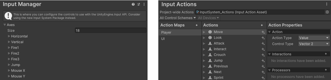 | Input Manager (Old) | Input System (New) |