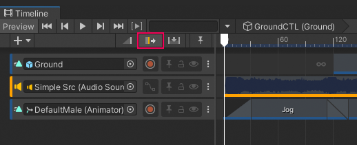 Timeline window with Ripple mode as the selected Edit mode.