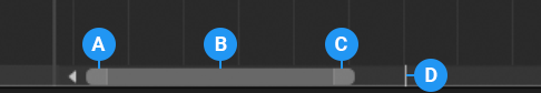 (D) The white line indicates the location of the Timeline Playhead. Use this line to view the location of the Timeline Playhead relative to the zoom level and the part of the Timeline instance displayed in the Content view. The Timeline Playhead, and the white line, only appears for Timeline instances.