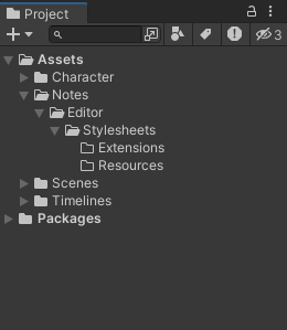 Extensionsfolder in theAssets/Notes/Editor/Stylesheetspath and choose Create > UI Toolkit > Style Sheet from the context menu. ANewUSSFile.ussis created in theExtensionsfolder. -