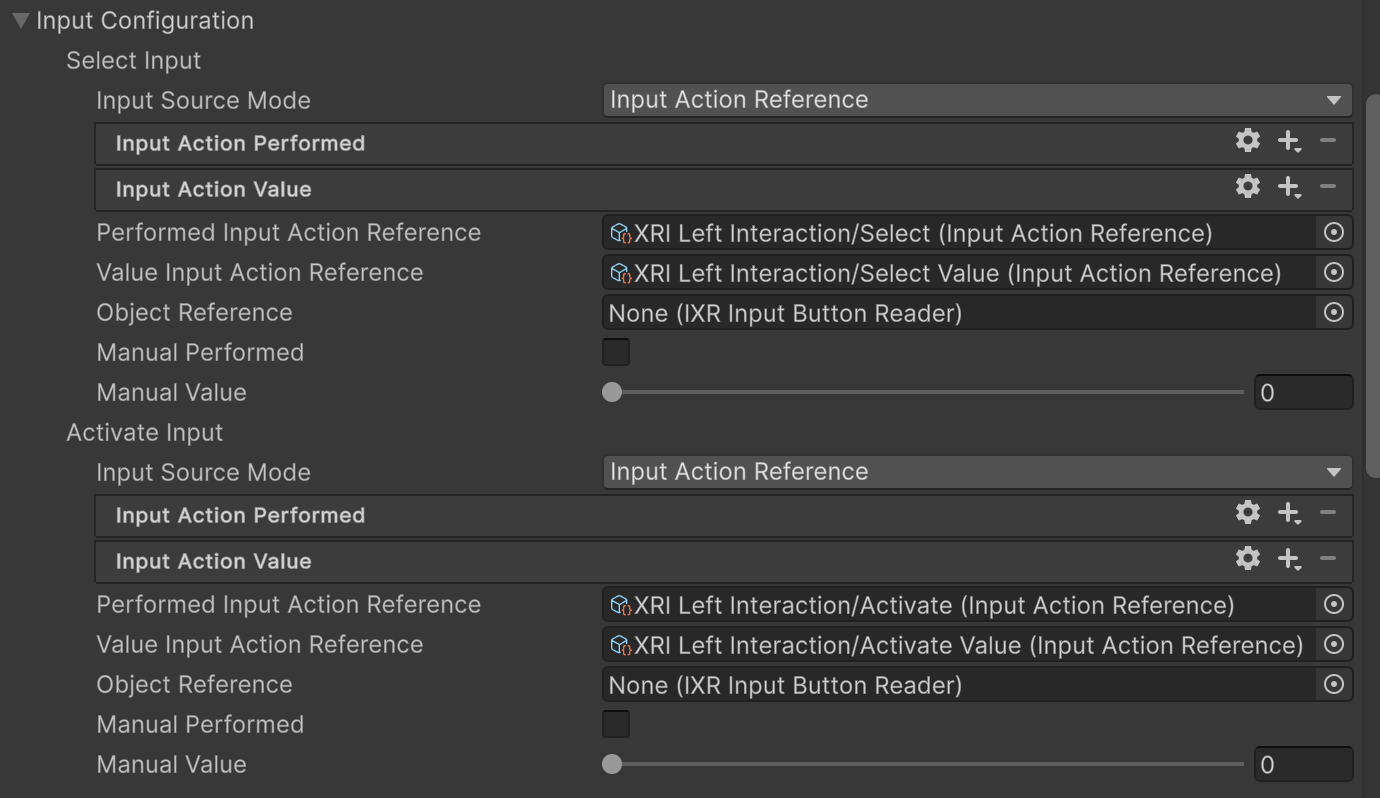 These settings control the Interaction Simulator, which you can install from the Package Manager window with the XR Device Simulator sample.