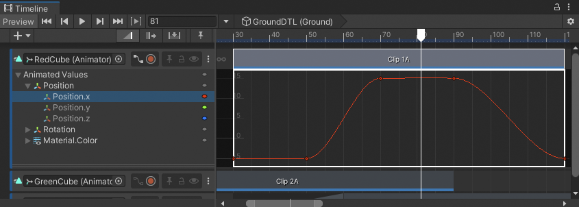 Curves view that displays the animation curve of the Position.x property