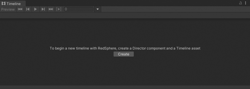 Click Create to create a Timeline asset, a Timeline instance, and add a Playable Director component to the selected GameObject